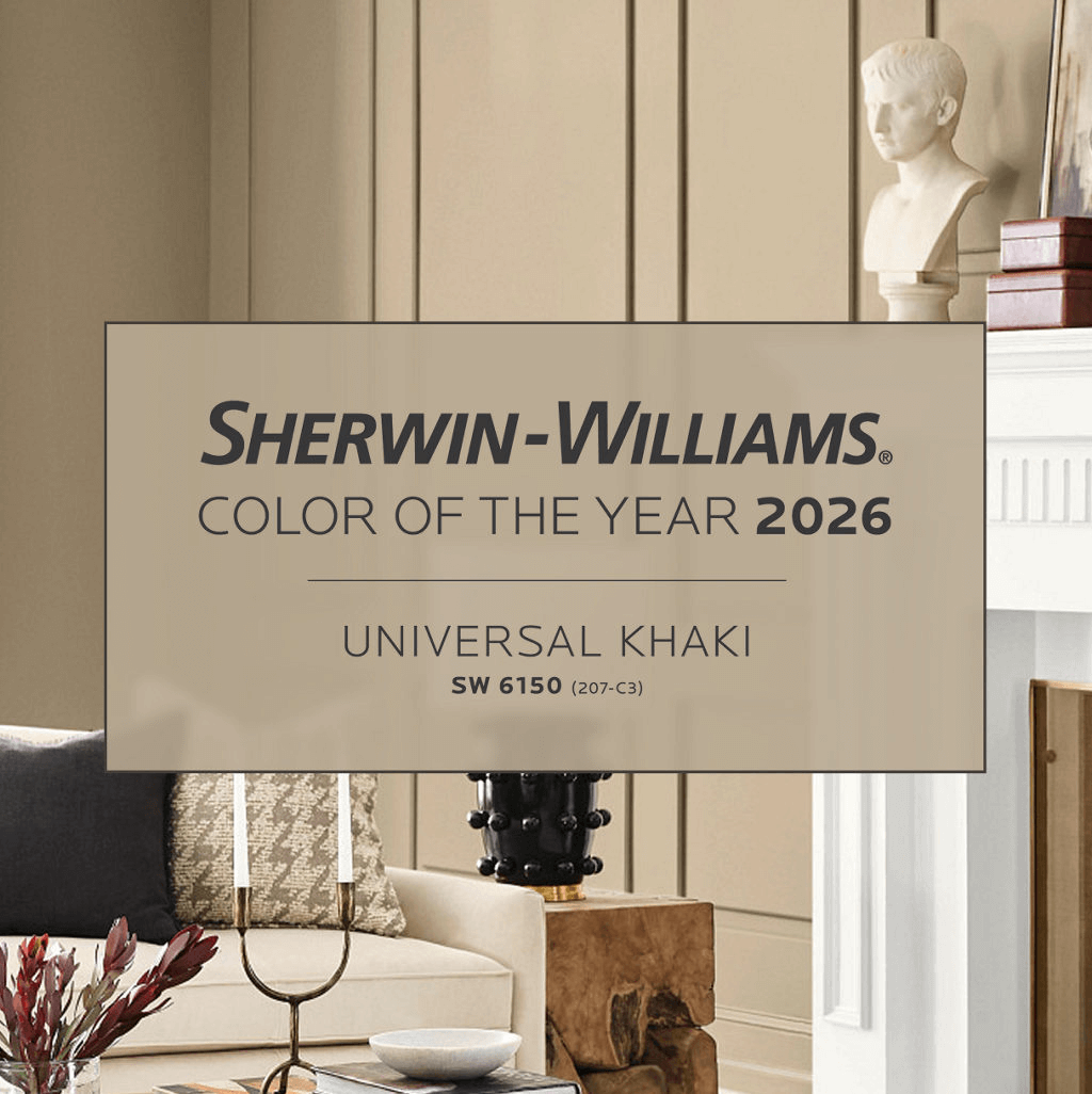 Sherwin-Williams chose Universal Khaki — a warm, earthy neutral with subtle green and beige undertones that bring both comfort and sophistication to interiors. It’s a balanced, versatile shade that works just as well in living rooms and bedrooms as in kitchens or hallways.