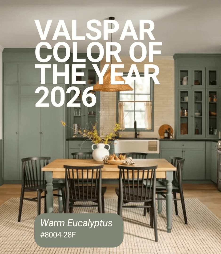 Valspar’s Color of the Year, Warm Eucalyptus, draws from nature with its muted gray-green that evokes calm and balance. It brings a grounded, organic feel to interiors and complements a wide variety of design styles — from contemporary to traditional.